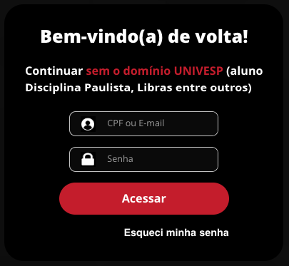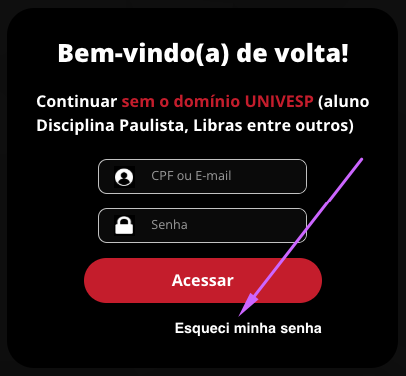 - Após definir a nova senha, volte à página ava.univesp.br e entre com seu e-mail e a nova senha.