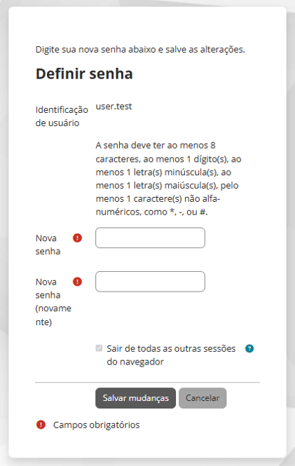 redirecionado para uma página onde poderá definir sua nova senha.